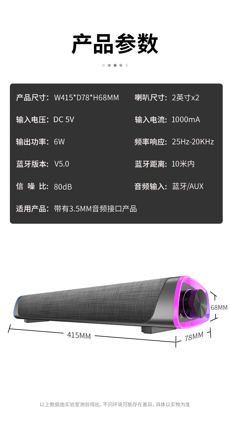 新款蓝牙音箱soundbar声霸电脑音箱双喇叭桌面音响低音炮