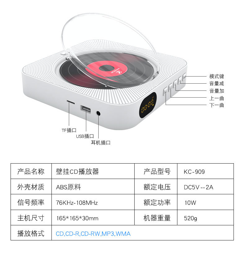 家用壁挂CD蓝牙音箱学习复读机 早教收音cd机音乐播放器带盖mp3